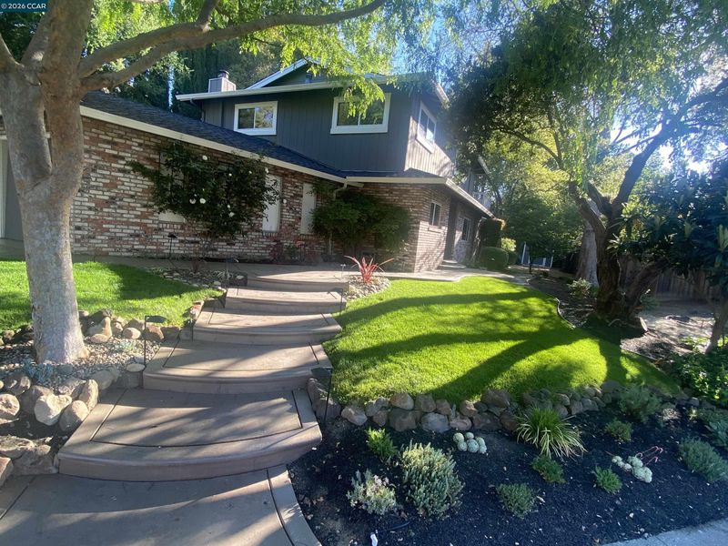 Welcome to this beautifully maintained home offering exceptional curb appeal and a private setting. Featuring 5 bedrooms and 2.5 bathrooms, this residence combines comfort, space, and thoughtful updates throughout. 5th bedroom downstairs is used as an office/den. Engineered hardwood floors flow seamlessly through the main living areas, creating a warm and inviting atmosphere. The updated kitchen is designed for both everyday living and entertaining, with modern finishes and ample workspace. Enjoy year-round comfort with a 2-zone climate control system. New stamped concrete driveway and walkways enhance the home’s exterior with both durability and stylish design. Step outside to a spacious, lush backyard—perfect for relaxing, hosting, or creating your own outdoor oasis.