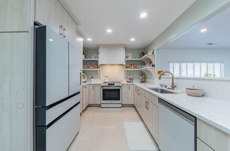 Welcome to 58 Young Drive, a beautifully remodeled and expanded home blending timeless charm with modern updates in desirable South Salinas. This thoughtfully designed 3-bedroom, 2-bath residence offers 1,844 sq ft of living space on a generous 6,400 sq ft lot. As you enter, you're welcomed by a warm and inviting formal living room with a dedicated office space, highlighted by natural wood flooring, recessed lighting, and a fresh modern feel throughout. The home has been tastefully expanded to create a spacious dining and family room combination, perfect for entertaining or relaxing by the cozy gas fireplace. The beautifully updated kitchen features natural wood finish cabinetry, floating shelves, quartz countertops, and modern Samsung appliances, complemented by stylish fixtures and textured laminate flooring. Skylights and well-placed windows bring abundant natural light throughout the home. Step outside onto a wood deck overlooking a lush backyard with green lawn, succulents, fruit trees, flowers, and space for outdoor entertaining or relaxation. Additional upgrades include an updated electrical panel, a water softening system, and Tesla Solar (paid in full) to improve efficiency. Lovingly cared for and thoughtfully maintained, this home reflects pride of ownership throughout.