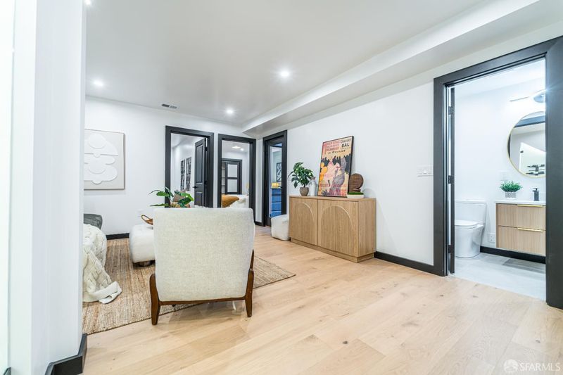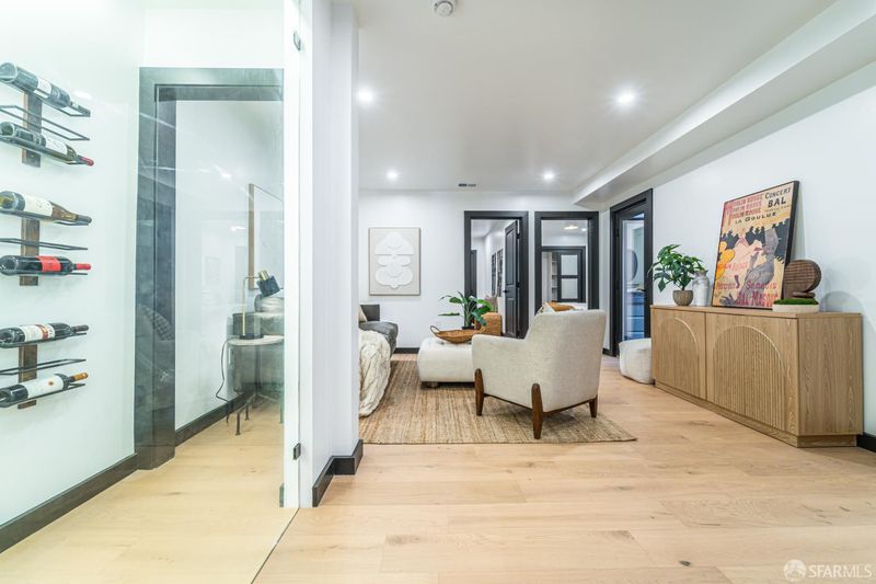 This distinguished single family residence was taken to the studs and reimagined with exceptional attention to detail, creating a home that feels both architecturally refined and quietly dramatic. Thoughtfully curated interiors blend modern sophistication with artistic expression. A bespoke mural by Grisha Camargo serves as a striking focal point, while a sleek glass-enclosed wine display and wet bar add contemporary flair. The structurally reinforced roof terrace is the crown jewel, showcasing sweeping views of Alcatraz, the Bay and iconic glimpses of the Transamerica Pyramid and Salesforce Tower, an ideal setting for intimate evenings or elevated gatherings beneath the city skyline. Behind the scenes, the comprehensive renovation includes structural upgrades, high-efficiency central heating, tankless water heater, new electrical and plumbing systems. Integrated security and smart home features, including a wired camera system and Google Nest climate control, provide seamless comfort and convenience. Located on one of Russian Hill's most coveted streets, just moments from renowned dining, hidden stairways, and the energy of North Beach, this turnkey residence offers refined living in one of San Francisco's most storied neighborhoods.