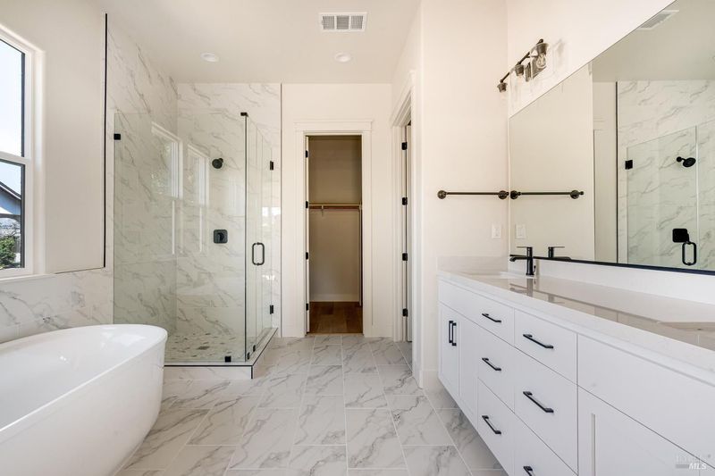 Double Sinks, Quartz, Shower Stall(s), Soaking Tub, Tile, Walk-In Closet
