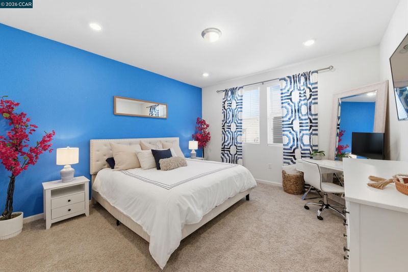 Welcome to Retreat at Vista Del Mar, where modern comfort meets effortless living. This beautifully designed 4-bedroom, 2.5-bath home features a versatile loft and a desirable alley-loading garage, and upgraded epoxy garage flooring. The main level offers a bright, open-concept layout ideal for both everyday living and entertaining. The spacious great room flows seamlessly into a stunning kitchen complete with a large working island, light grey cabinetry, quartz countertops, and a full-height backsplash. The dining area opens to a private side courtyard through sliding glass doors—perfect for indoor-outdoor living. Upstairs, a flexible loft creates the ideal space for a media room, home office, or play area, thoughtfully separating the owner’s suite from the secondary bedrooms. The serene primary retreat features dual vanities, a walk-in shower, and a generous walk-in closet. Three additional bedrooms, a shared bath, and a convenient upstairs laundry room complete the second floor. Ideally located near Bay Point BART, Oak Hills Shopping Center, and with easy access to Highway 4 and I-680, this home offers both comfort and convenience in a well-connected community.
