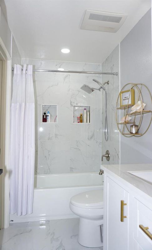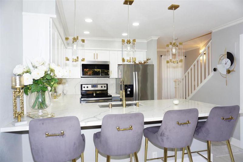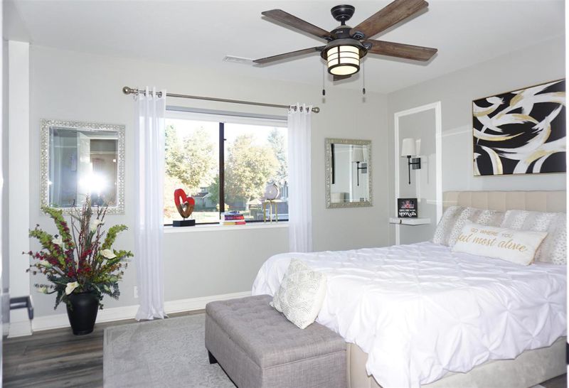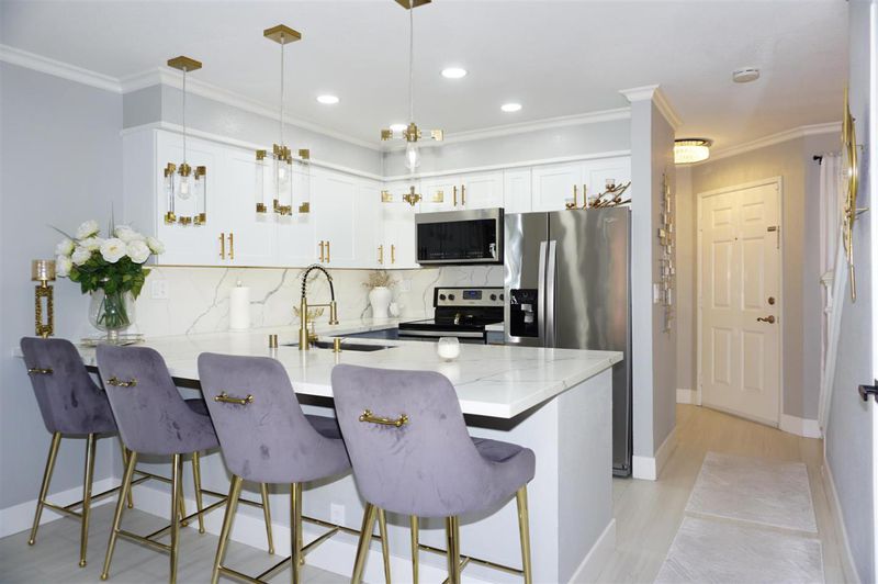 Stunning, fully remodeled home in the desirable Creekside community! This beautifully updated residence features a bright open-concept layout with a designer kitchen showcasing quartz countertops, custom two-tone cabinetry, brass hardware, and elegant modern lighting. The spacious living area offers a seamless indoor-outdoor flow with large sliding doors leading to a private balcony boasting peaceful views and a retractable awning for added comfort. Additional upgrades include an expanded walk-in closet with a working desk, Tesla charger, whole-house surge protection, and a generator backup plug ready. Located in one of the best spots in the complex, this home combines style, comfort, and conveniencemove-in ready and truly one of a kind! HOA facilities include: Pool and Spa Clubhouse for parties and meetings Exercise room with top-of-the-line equipment Saunas (located in the clubhouse restrooms) Childrens playground Tennis and basketball courts Beautiful grounds with ponds and waterfalls (and ducks!) Private streets