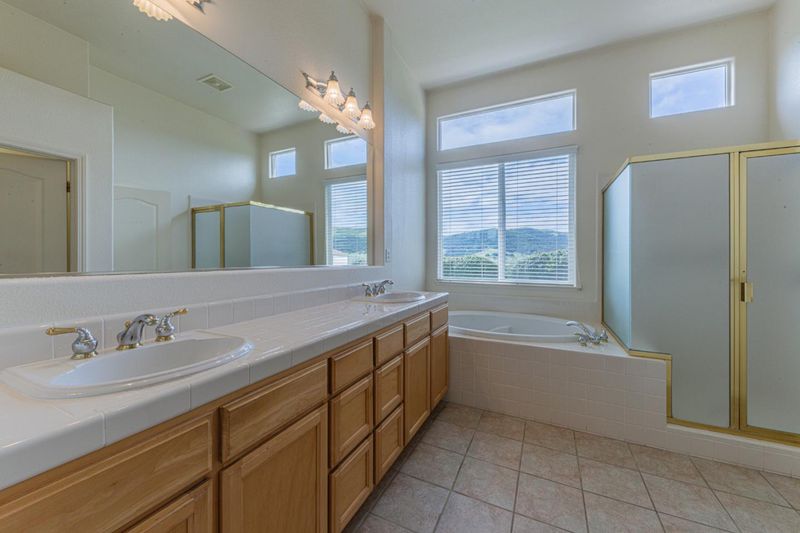 - Double Sinks, Oversized Tub, Shower and Tub, Stall Shower, Tub in Primary Bedroom, Tubs - 2+