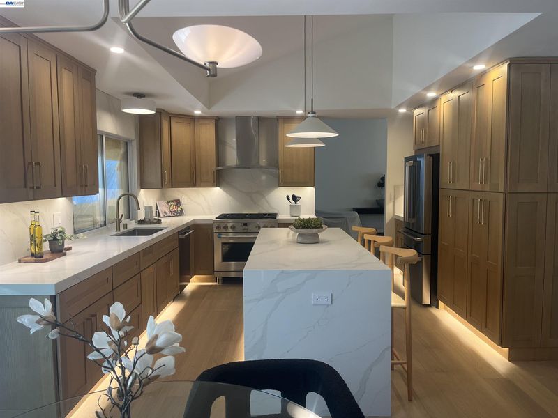 Nestled in the highly sought-after Diablo West neighborhood. This court location property offers 5 bedrooms & 3 baths. Having a bedroom & full bath downstairs along with a primary with 3 additional bedrooms & 2 baths upstairs. 2696 sqft of upscale living & moments to Downtown, top-rated schools & easy access to HWY 680. Featuring an interior filled with natural light, vaulted ceilings & decorative lighting. The gourmet kitchen is central to the living room, dining area & step-down family room with gas starter fireplace & access to backyard patio. Custom cabinetry, professional grade appliances & large breakfast island. Primary bath offers a floating double vanity, decorative lighting & spacious shower. This stunning court location property does not lack exceptional features which include; step lighting, decorative touches & owned solar. Additional highlights are a large lot, private backyard retreat, spacious side yard & 3 car garage. Diablo West green belt offers walking paths, clubhouse & many other amenities. Truly luxury living at it's finest.