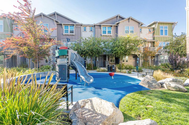 Welcome to this beautiful end-unit townhome in the sought-after The Vale community of Sunnyvale, featuring 4 beds and 3.5 baths. A front porch welcomes you in, with a ground-level suite offering large windows, a walk-in closet, and a bath with stall shower-ideal for guests or extended family. The second level showcases an open floor plan with a spacious living room, dining area, and kitchen, enhanced by abundant natural light from large windows. Enjoy outdoor relaxation on the private balcony. The modern kitchen features a large island with pendant lighting, quartz countertops, stylish tile backsplash, stainless steel appliances, and ample white cabinetry. A laundry room and half bath on this level add convenience. The third level hosts the primary suite with high ceilings, bright windows, and a walk-in closet. The en-suite bath includes a double vanity with quartz countertops and a stall shower. Two additional bedrooms share a hallway bath with double vanity and shower over tub. Additional highlights include an attached two-car garage. The Vale community offers parks, playgrounds, and a clubhouse. Conveniently located near major tech companies, restaurants, shopping, groceries, and with easy access to Highways 101, 237, and Lawrence Exwy. Do not miss this great opportunity!