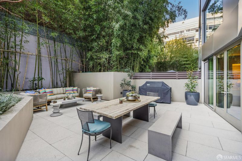 Experience elevated city living in this rare three-level, three bedroom, 4 full bathrooms interior townhome, nestled within an exclusive full-service boutique condominium community in the heart of Pacific Heights. Seamlessly blending the feel of a single-family residence with the convenience of luxury condominium living. This thoughtfully designed home embodies sophistication, privacy, and modern comfort. The dramatic main level welcomes you with a gracious entry that unfolds into an expansive open-concept living, dining, and kitchen space, complemented by dual seating areas. Soaring ceilings and a wall of floor-to-ceiling windows and the view of a lushly landscaped patio garden invites a seamless connection between indoor and outdoor living. The well-appointed kitchen features marble counters, Gaggenau appliances, including an oven, convection oven, and gas cooktop. Generous cabinetry enhances both form and function, creating an ideal setting for everyday living and entertaining. A striking second-level mezzanine overlooks the great room and garden below, offering an ideal work-from-home setting or additional lounge space. This level also features a generously sized en suite bedroom with custom closets. A dedicated laundry room is conveniently located on the landing between the second and third levels. The top level is a private retreat, featuring a serene primary en suite bedroom designed for comfort and relaxation. An additional en suite bedroom provides flexibility for guests, family, or use as a media room, office, or library. The home offers A/C and EV parking for one vehicle. Residents enjoy exceptional amenities, including an attended lobby, gym, and a rare observation room and deck with exceptional city views. The highly sought after location offers easy access to shopping, restaurants, entertainment, public transportation, and surrounding neighborhoods.