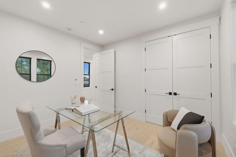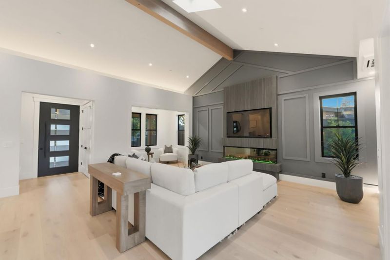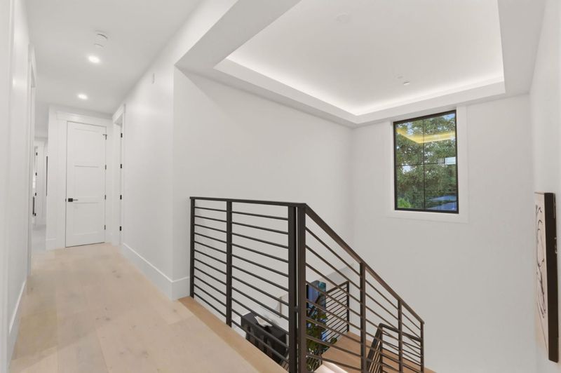 Discover unparalleled luxury in this brand-new Construction Masterpiece! This modern farmhouse showcases impeccable craftsmanship, created with the most discerning eye for detail. Featuring an abundance of high-end finishes throughout. Step into a gorgeous open-concept floor plan highlighted by 15-foot cathedral ceilings and 12-foot cantina-style doors.The home is equipped with a high-efficiency Mitsubishi ductless mini-split system throughout, staircase with integrated LED lighting. The stunning chef's kitchen is anchored by an impressive, oversized island, complemented by a butler's pantry, sleek European-style custom cabinetry, and professional-grade paneled Thermador appliances, including a built-in Coffee Machine and handcrafted exposed beams. Enjoy spa-like bathrooms featuring thermostatic shower valves, designer tile by Porcelanosa, heated floors. The exterior is equally impressive, enhanced with Cedar Wood -accented walls, James Hardie cement siding, and a sleek contemporary metal roof covering the entire home. Thoughtfully designed exterior lighting highlights the property, along with a spacious 685 sqft covered porch. Unlike many new homes, this property comes fully and gorgeously landscaped and hardscaped, including modern iron gates. Owned Solar System.2 Laundry Rooms