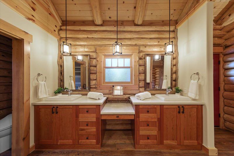 - Double Sinks, Shower and Tub, Skylight, Split Bath, Stone, Full on Ground Floor, Showers over Tubs - 2+, Primary - Oversized Tub, Primary - Stall Shower(s)