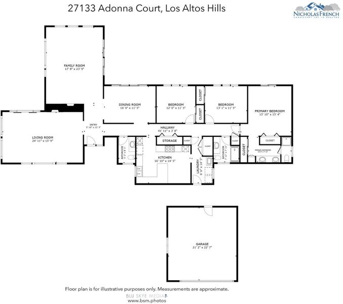 Experience the pinnacle of modern luxury at 27133 Adonna Court, a masterfully reimagined estate in the heart of Los Altos Hills. Taken to the studs and extensively remodeled in 2018, this residence was crafted with uncompromising quality, featuring all-new infrastructure including plumbing, drainage, and wiring. Every detail reflects the work of top-tier craftsmen using the finest materials. The homes aesthetic is defined by sleek hardwood flooring and soaring floor-to-ceiling Andersen windows and sliding doors that frame stunning views of both the East and West Hills. The open-concept design is bathed in natural light, featuring electronic window coverings and a fully integrated A/V system. The chefs kitchen is a showpiece of functional elegance, equipped with a Sub-Zero refrigerator and Wolf cooktop and ovens. Situated on a rare, "pancake flat" lot, the property offers expansive, fully landscaped grounds. A key highlight of this location is access to the prestigious Palo Alto Unified School District, including highly-rated Nixon Elementary, Fletcher Middle, and Gunn High. Whether you are hosting an intimate gathering or enjoying a quiet sunset against the backdrop of the rolling hills, this home offers a sophisticated lifestyle in one of the Peninsulas best locations!