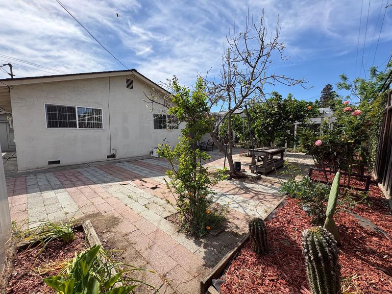 An exceptional location in Cupertino Area with modern updates/designs. Bright living room with crown molding, chandelier & front garden + mountain view. Living & family room-combo provides ample space for relaxation, while the living area is accentuated by skylights & indoor-outdoor access to brick patio under a wooden pergola. Tool shed in the backyard with many fruit trees & space for outdoor entertainment. Eat-in kitchen with thoughtfully designed kitchen featuring stainless steel appliances: a gas cooktop, a new air fryer oven toaster with multi-functions, granite countertops with cabinets-ample for storage, dishwasher, garbage disposal, microwave, pantry, and refrigerator, making it perfect for relaxing & comfort. Engineered hardwood floors, recessed lighting throughout main living areas, charming bay windows & skylights which add abundance of natural light throughout. Two updated bathrooms with tile finishes tile, granite counters, touch screen light mirrors and a primary stall shower enriched by skylights.Double pane windows, energy efficient- attic insulation, cooper plumbing, new water heater, new main door, ~7 year roof, security cameras & laundry in garage. Large lot with ADU/expansion potential! Close to Hi-Tech hubs, shopping, dining, schools & Easy Freeway Access!