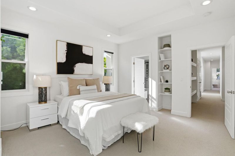 Modern living in a prime Silicon Valley location. This beautifully designed two-story single-family home showcases meticulous architecture and exceptional attention to detail throughout. The open-concept floor plan features inviting gathering spaces, including a chefs kitchen, spacious living room, and dining area with French doors that seamlessly extend to the backyard. The gourmet kitchen is appointed with custom cabinetry, white quartz countertops, and elegant wood, tile, and quartz finishesperfect for both everyday living and entertaining. A convenient first-floor bedroom and full bath offer flexibility for guests or multi-generational living. Upstairs, the oversized primary suite provides a private retreat, complete with a sitting area, walk-in closet, and a spa-inspired bathroom featuring both a soaking tub and separate shower. High ceilings and expansive windows fill the home with abundant natural light. Ideally located with easy access to Highways 280 and 17, San Tomas Expressway, and Lawrence Expressway. Served by highly regarded Campbell schools, including Easterbrook Discovery and Prospect High (buyer to verify). Nearby private school options include Harker (K12), Challenger (K8), and Archbishop Mitty High School.