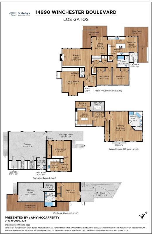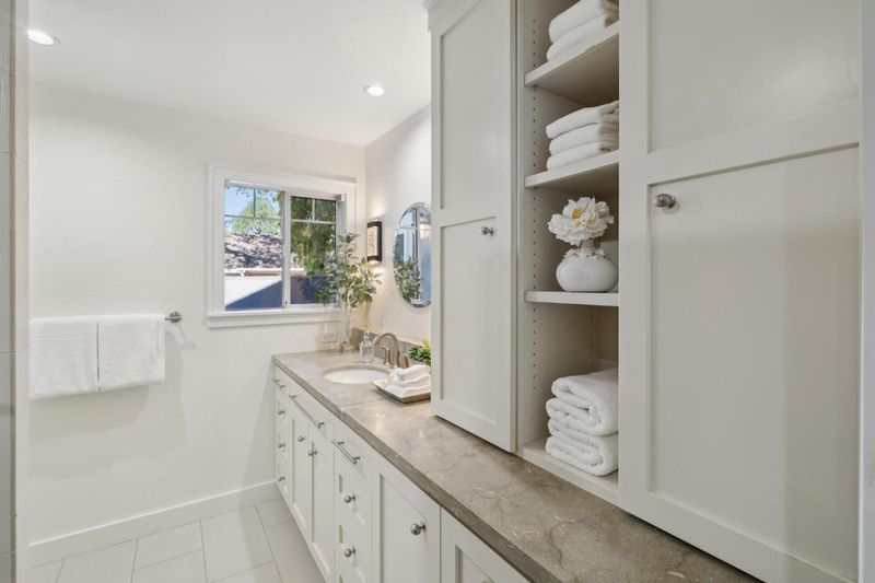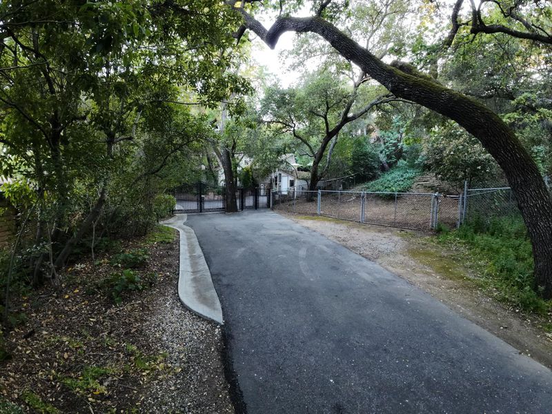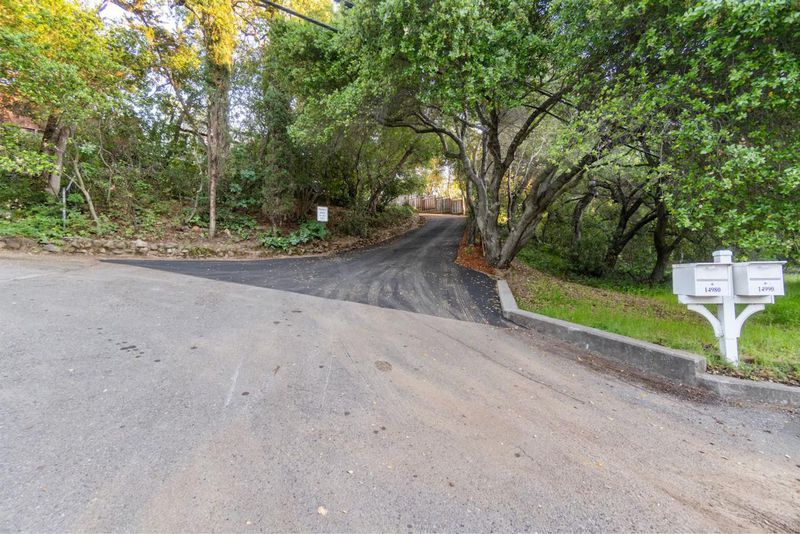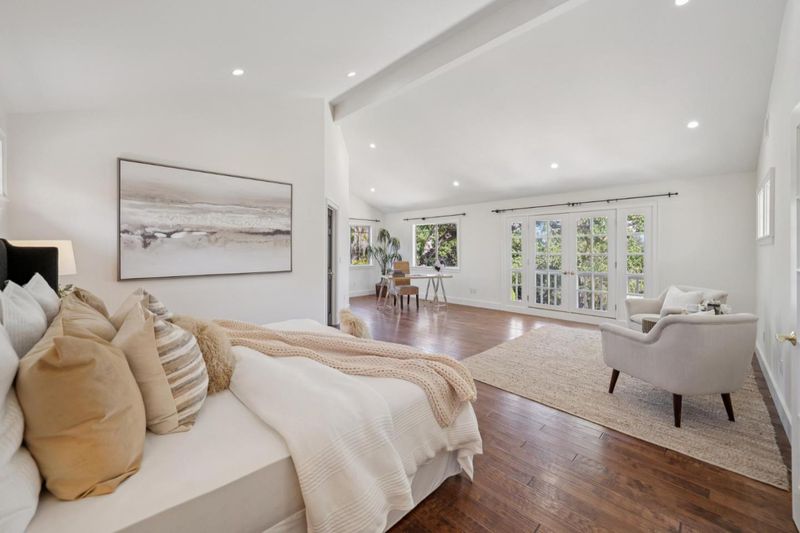 Hidden along a quiet stretch of Winchester Boulevard, this LG property is accessed via a long private drive surrounded by mature trees & landscaping, creating a peaceful, secluded setting. Motor court, 3-car garage & inviting outdoor areas give the property a private feel. In addition, the permitted detached cottage includes a living area, kitchenette, bedroom & updated bath. For the main house, a striking black entry door opens to wood floors, vaulted ceilings & expansive windows that fill the home with natural light. 2 living areas include a lounge with a built-in media center & a 2nd space with a gas-log fireplace and built-in shelving. The kitchen features a granite island with a Thermador cooktop, dual sinks, ample cabinetry, a walk-in pantry & high-end appliances including Thermador double ovens, a GE Monogram refrigerator & a Bosch dishwasher. Breakfast area overlooks the gardens, and dining room opens to the backyard for indoor-outdoor living. 2 main-level bedrooms share a full bath. Upstairs, the primary suite offers vaulted ceilings, a Juliet balcony with views of the LG Hills & a bath with soaking tub, glass shower, dual vanity, and walk-in closet. Outdoor spaces w/ gardens and paths. Solar w/ Tesla battery storage and dual HVAC complete this property near downtown LG.