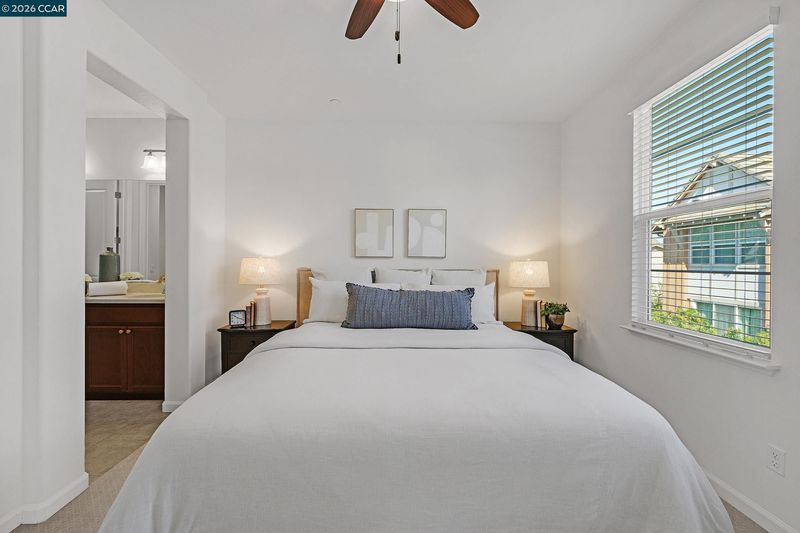 This stylish, NORTH facing, move-in-ready townhouse-style condo offers 3 en suite bedrooms for ultimate comfort and privacy plus office and 3.5 baths. The first floor features a private bedroom and full bath with walk-in closet—ideal for remote work/multi-generational living or guests. On the second floor, you’ll find an inviting open-concept living space with wood flooring, a bright living and dining area with balconies on both ends and a Chef's Dream kitchen equipped with a gas stove, stainless steel appliances, upgraded cabinetry and a spacious island. On this level is also an office and half bath. The third floor has a generous primary suite with walk-in closet, dual vanities, and shower plus an additional bedroom en suite. The third floor hosts a generous primary suite with a walk-in closet, dual vanities, and a walk-in shower, plus an additional bedroom en suite. Located just .2 miles from Cottonwood Creek School, little over a mile to Emerald Glen High School, and close to Fallon Sports Park, shopping, dining, freeway access, and major employers, this home blends convenience with modern comfort. A perfect blend of style, versatility, and location! Don't miss this opportunity.
