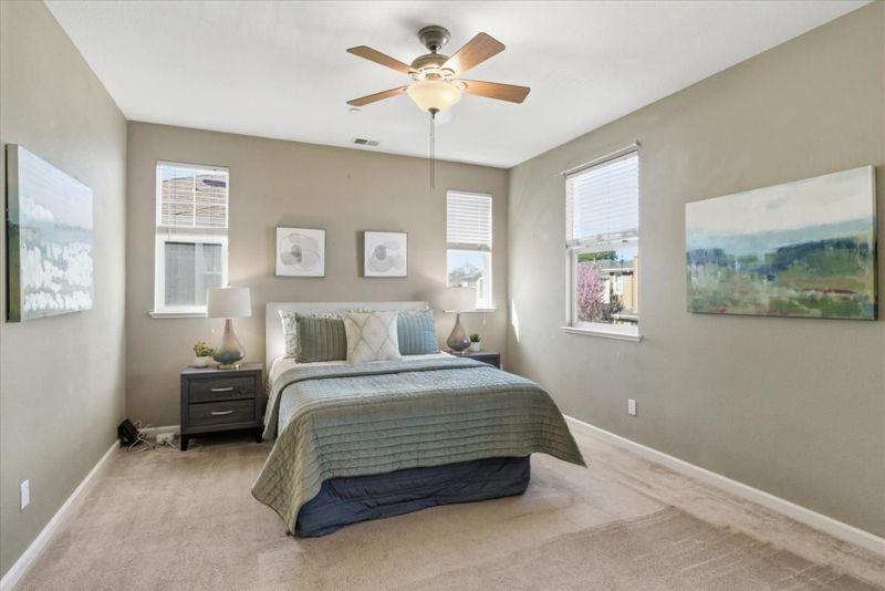 Welcome to beautiful living in the heart of Gilroy! For the price of a condominium, enjoy the privacy and comfort of a single-family home. This 3-bedroom, 2.5-bath, two-story home offers a side-by-side 2-car garage and approximately 1,497 sq. ft. of bright, open living space in the desirable Oak Commons Community. Natural light fills the thoughtfully designed floor plan. The spacious living area features a cozy fireplace, perfect for relaxing evenings. The well-appointed kitchen offers ample counter space and cabinetry, seamlessly connecting to the dining and living areasideal for everyday living and entertaining. Upstairs, the primary suite provides a private retreat with an en-suite bath and generous closet space. Two additional bedrooms offer flexibility for family, guests, or a home office. Additional highlights include an indoor laundry room, attached two-car garage, and solar for energy efficiency. The low-maintenance backyard is perfect for easy outdoor enjoyment. Community amenities include a pool, greenbelt, playground, and guest parking. Conveniently located near schools, shopping, dining, and major commuter routes, this move-in-ready home offers comfort and convenience.
