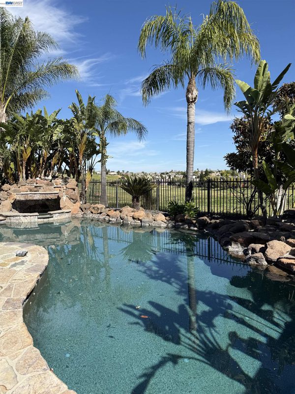 Rare opportunity to own a stunning home on the Shadow Lakes Golf Course! This spacious 5-bedroom, 4 full bath residence features soaring vaulted ceilings, rich hardwood flooring, and breathtaking golf course views from the family room, kitchen, and the upstairs primary suite. Designed for both comfort and entertaining, the home offers a formal living and dining room, along with a desirable kitchen/family room combo. A convenient first-floor bedroom and full bath provide flexibility for guests or multi-generational living. Step outside to your private backyard oasis—featuring approximately $140,000 in upgrades, including a built-in pool, spa, grotto, mature palm trees, and a cozy fire pit—all perfectly positioned to overlook Hole #2. Truly resort-style living at home! Additional highlights include a 3-car garage, owned solar for energy efficiency, and recently painted exterior. A rare blend of luxury, space, and location—don’t miss this exceptional opportunity!