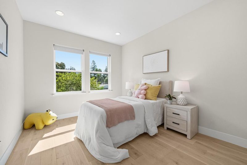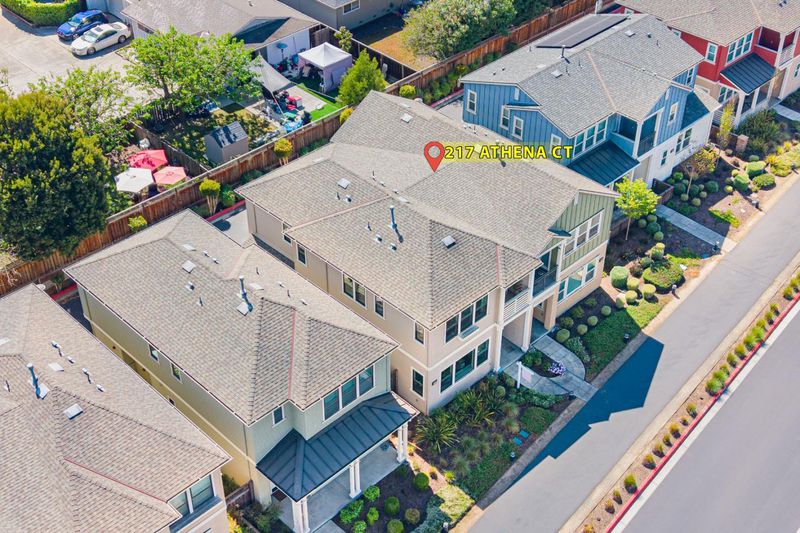 Rare two-story duet in Mountain View with a private side yard and raised garden beds. Tucked away on a quiet cul-de-sac, this well-maintained home offers an open-concept layout with high ceilings, abundant natural light, and a beautifully upgraded kitchen featuring Bosch appliances, a separate range hood, large sink, and a striking waterfall countertop. Custom Shade Store blinds add a polished finish throughout. Upstairs, a spacious landing offers flexible use as a home gym with abundant storage. The master bedroom suite features a private shaded balcony, while the primary bath includes a relaxing soaking tub for a spa-like experience. Two additional bedrooms share a double vanity full bath and a laundry room with sink add everyday practicality. Smart home features such as Nest and Ring and smart locks, and the oversized garage offers ample storage and a Tesla charger. Enjoy close proximity to parks, tennis courts, Caltrain, and Downtown Mountain View, with easy access to Highways 101 , 237 and 85. Conveniently located near Google and Meta, with a Meta shuttle stop near the community.