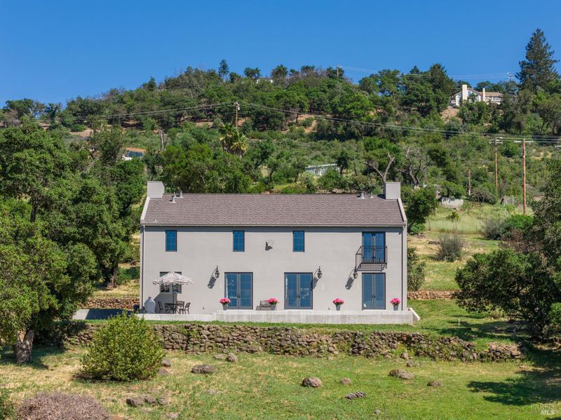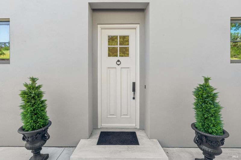 Set on 2.52 private acres with sweeping valley and vineyard views, this stunning new construction European Country home is a rare offering in one of California's most coveted destinations. Thoughtfully designed and impeccably finished, every detail reflects an unwavering commitment to quality. The chef's kitchen features custom Wood Mode cabinetry, dramatic basalt countertops, a Miele range, Viking refrigerator and dishwasher, and a dedicated Subzero wine fridge. Living spaces are warm and timeless, anchored by hardwood floors, solid core doors, and Loewen windows that frame the landscape like living art. The fireplace a sculptural Ortal Wilderness unit with a custom Tartauga mantle becomes the natural gathering point for cool Napa evenings. Bedrooms feature California Closets built-ins, while bathrooms are finished in limestone tile with Rohl and Phylrich fixtures. Practical luxuries include an on-demand hot water system, Rheem water softener, and California Closets cabinetry in the laundry and pantry. A detached 3-car garage with 900 sq ft of unfinished space above complete with architectural drawings for a potential guest suite offers exciting possibilities for expansion. Don't miss the opportunity for this brand new build in Wine Country (professionally appraised in January 2026!)