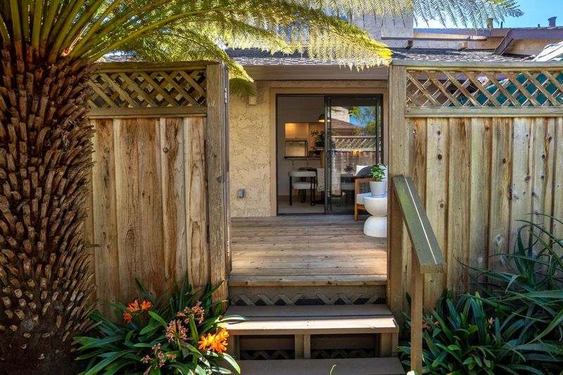 Discover the charm of Aptos in this updated, quiet, end unit, with 2 bedrooms, 2 bathrooms and a loft that is currently used as an office. The ambiance of vaulted and high ceilings with lots of windows create an airy, spacious feel throughout the home. Amenities include a newer dishwasher, water softener, and a convenient laundry area in the oversized two car garage, including a newer washer and dryer. There is a balcony off of both bedrooms as well as a private deck and patio for dining and enjoying our fabulous weather. This home is centrally located close to Cabrillo College, and is minutes from New Brighton and Seacliff State Beaches, Nisene Marks State Park with hiking and biking trails, Aptos Village and Capitola Village with great restaurants, bakeries and shopping and the very popular Cabrillo Farmer's Market.
