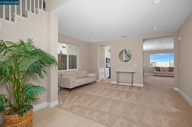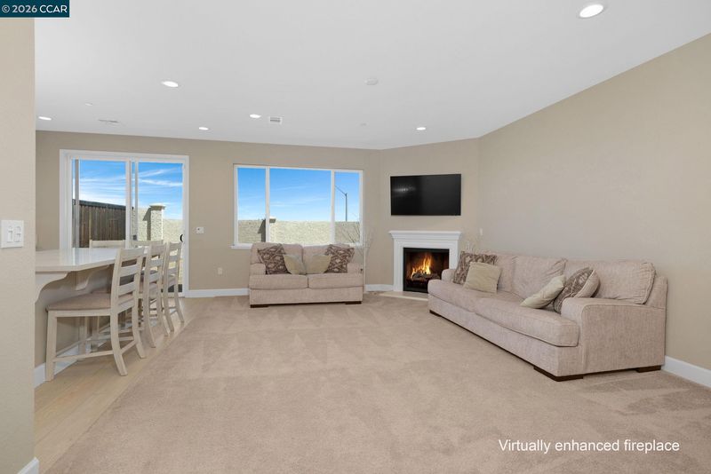 OPEN SUNDAY 1-4! Welcome home to 3133 Cortina Drive in the desirable San Marcos community of Bay Point! This newer two-story home offers a flexible and spacious layout designed for modern living. Step through the front door into the light-filled foyer with a statement spiral staircase. Just inside, a formal living and dining area is perfect for special family moments. Through there is the open family room and kitchen. With windows looking out to the backyard, and a gas fireplace offering a feeling of coziness, this is where your family will hang out, whether for homework nights or dinner in. The updated kitchen is a standout, featuring stainless steel appliances, a gas stove, lots of cabinet space, a large center island with a breakfast bar, as well as a pantry and adjacent coffee bar area, and a slider to the backyard. The main level also features a full bedroom and bathroom, perfect for guests, multigenerational living, or a private home office. Upstairs, the home continues to impress with four additional bedrooms and three full bathrooms, providing ample room for family and guests. A versatile loft/den area offers the perfect space for a media room, a study space, or a book nook. The large primary bedroom has windows overlooking the area, a large walk-in closet, and it's own full bath with dual vanities and a separate shower and soaking tub. Three additional bedrooms, two baths, and a laundry room combine to ensure everyone has a space of their own. Additional highlights include a two-car garage and owned solar panels for improved energy efficiency. The fenced backyard is ready for your personal touch—whether you envision a garden, outdoor entertaining area, or custom landscaping. This home is ideally located near major commute corridors, schools, parks, and shopping, combining comfort, functionality, and accessibility in one desirable package. Come on by, and come home to Cortina Drive!