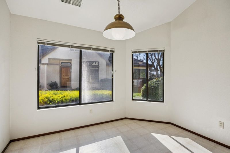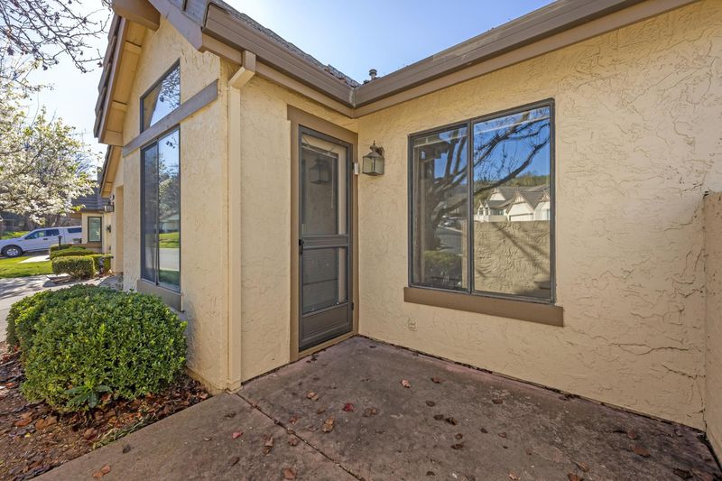 Located in an award-winning, vibrant 55+ gated community, this desirable single-level end unit offers privacy, resort-style living and feelings of well-being with a 24-hr guarded entry gate. With no rear neighbors, the home overlooks tranquil green space and features two bedrooms and two full bathrooms. The light-filled living and dining area showcases vaulted ceilings and a cozy gas-starter fireplace. The large primary suite also features vaulted ceilings, a walk-in closet, and a spacious bathroom with dual vanities, a deep soaking tub, and separate shower, plus a second private patio just off the bedroom. The kitchen offers ample cabinetry and a generous eat-in area. Additional highlights include a hallway laundry area, interior access to a large attached two-car garage, and a spacious low-maintenance backyard with a very sweet mature lemon tree. Residents enjoy exceptional amenities including two golf courses, pickleball, tennis and bocce ball courts, BBQ areas and tables, four swimming pools, a fitness center, community rooms, a full-service restaurant, casual bistro, 500 acres of scenic hiking trails, equestrian stables, community garden, and 70+ clubs and social groups-creating the perfect place to relax, connect, and thrive!
