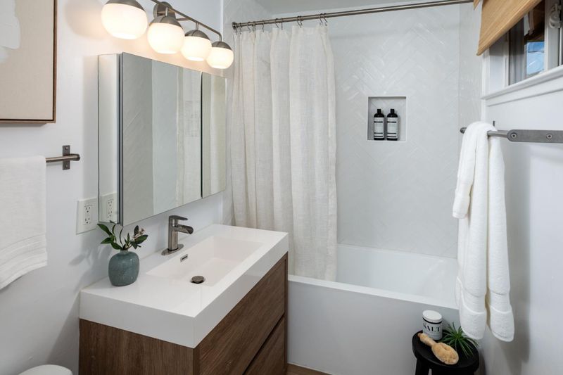 Welcome home to this darling, well-loved residence in the desirable Barron Park neighborhood of Palo Alto, offered for the first time in 40 years. This move-in-ready single-family home has been tastefully remodeled within the past two years with luxury vinyl plank flooring, contemporary light fixtures, and fresh interior paint throughout. The kitchen features quartz countertops and stainless steel appliances, including a Fisher & Paykel refrigerator, Broan vent hood, GE dishwasher, and built-in oven. The living room offers recessed lighting, a wood-burning fireplace, and built-in shelving. The home includes three bedrooms, including a primary suite with ensuite bath, plus a hall bathroom with soaking tub and custom herringbone-style tile. Two sliding glass doors open to a private side patio and backyard with gazebo and lush landscaping featuring mature cherry trees, a dwarf apple tree, and thornless blackberry and blueberry bushes. Energy efficient dual-pane windows, added wall and ceiling insulation, and a brand-new water heater provide year round comfort. Located in a peaceful community served by top-rated Palo Alto schools, with excellent proximity to Stanford University, high-tech hubs, and Bol Park. You won't want to miss this home in the heart of Silicon Valley.