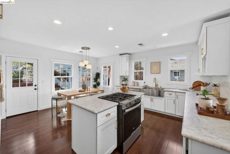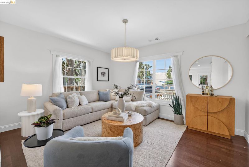 Modernly restored Craftsman on a picturesque, tree-lined street near the Emeryville–Oakland border. Tucked along a quiet single-lane block, yet just steps from favorite shops, restaurants, coffee, parks, and transit, and minutes to Bay Street and the Emeryville Public Market. A lush front garden, cheerful flower boxes, and an inviting enclosed porch welcome you home. Inside, a gracious entry opens to a light-filled, open-concept living room and kitchen. The spacious updated kitchen features a standalone island, stone countertops, built-in cabinetry, stainless steel appliances, and ample storage, with direct backyard access for seamless indoor-outdoor living. The main house offers two generous bedrooms with great closet space and two remodeled baths, including a primary ensuite. Outside, a sunny deck and native landscaping invite relaxation or gardening. And just when you think it couldn’t get better, a detached one-bedroom, one-bath studio provides flexible space for guests, a home office, or creative pursuits. An oversized driveway provides easy parking, though a 95 Walk Score encourages leaving the car behind and enjoying the best of East Bay living.
