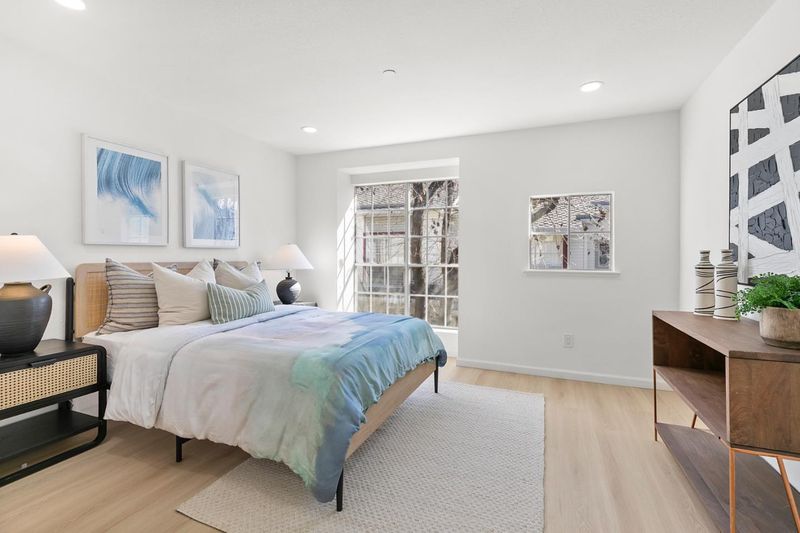 Charming 2 beds, 2.5 baths townhouse in the heart of Sunnyvale with top-rated schools (Homestead HS). Bright and open living room features cozy fireplace, large bay window, recessed lighting, and new flooring throughout. Private front yard offers a perfect outdoor retreat. Modern kitchen showcases shaker cabinets, quartz countertops, marble backsplash, and stainless steel appliances. Upstairs features spacious primary suite with double sinks and large window for abundant natural light, along with second ensuite with its own private bath. Fresh interior paint, two-car garage with in-unit laundry and EV charging wired. Central A/C for year-round comfort. Community amenities include pool and spa. Prime location near parks, shopping, dining, and easy access to Highways 85, 237, and 101. Short commute to Apple, Google, and other major tech companies.