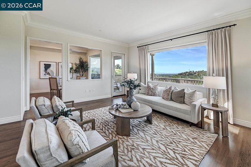Rarely do you find a level-in home, end location that has been so beautifully remodeled and redesigned paired with distinctive architecture and breathtaking deep vista views of Mt Diablo. From the moment you enter, soaring 10-foot ceilings and walls of windows flood the space with natural light, immediately drawing you toward the expansive deck ~ a seamless extension of the living area that perfectly blends indoor and outdoor living. Every detail reflects exceptional craftsmanship and thoughtfully curated design creating an open concept floorplan for the living room and dining room allowing for endless ways to situation furniture. Living room is accented by heart warming electric fireplace. Kitchen has been redesigned with a large island, premium materials sourced from top-tier suppliers define the home’s refined character. Custom cabinetry, elegant Marble Carrara Gold countertops, high-performance appliances, handcrafted pass through opening to dining room, select crown & base moldings, baths provide the ultimate spa experience with beautiful details. Additional features are the gorgeous hardwood flooring, and expertly blended custom paint palettes come together to create a cohesive and sophisticated aesthetic. The result is a truly prominent residence !!!