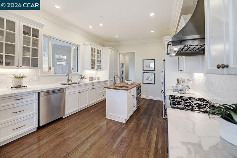 - Dishwasher, Gas Range, Microwave, Refrigerator, Stone Counters, Eat-in Kitchen, Disposal, Gas Range/Cooktop, Kitchen Island, Updated Kitchen