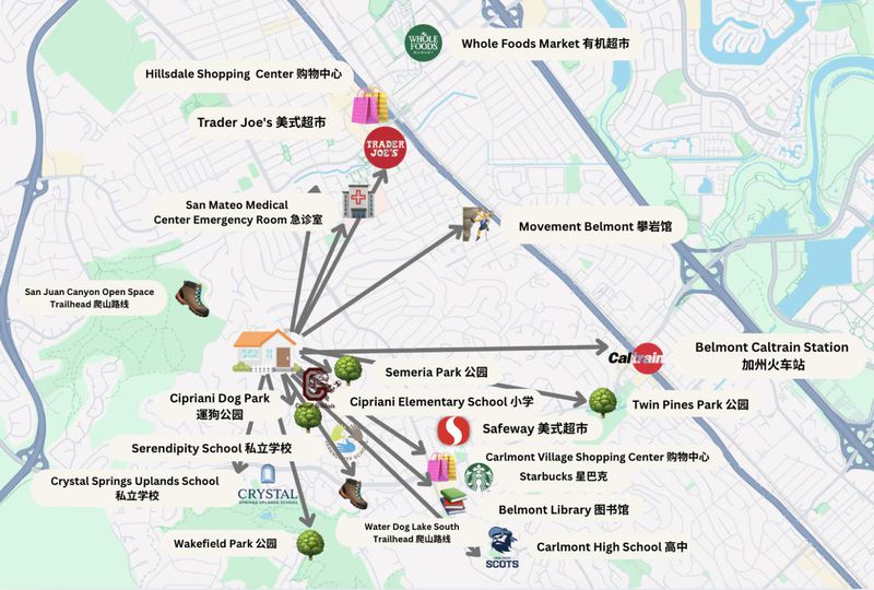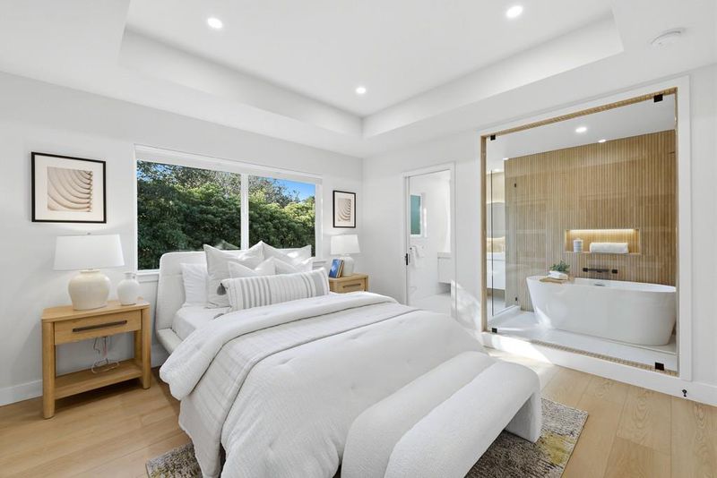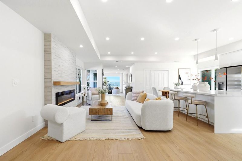 This sun-filled home was renovated with timeless designer style in 2022 with city permit. It offers 4 bed/3 bath with 2 primary suites, living room with high recessed ceiling and family room that offers a huge picture window with beautiful canyon views. The bright open plan kitchen has stainless steel appliances including gas range/ convertible under cabinet range hood/customized cabinets/handmade tile. All of the bathrooms have been updated with modern vanities and LED mirrors. The spacious primary bedroom offers recessed ceiling and a luxurious bath with glass wall and wood look porcelain wall tile. In 2022, the home was also upgraded with new central A/C/new ducting and insulation/updated lighting/dual-pane windows. The front yard has a private gated entry, giving you extra privacy and more usable outdoor space. The backyard is flat and perfect for outdoor activities. Tesla Solar Panels. Great neighborhood - you'll often see adorable deer roaming around the community! Just minutes from Hillsdale Shopping Center, Whole Foods, Sprouts, great dining, and the Water Dog Lake hiking trails. Top-rated Belmont schools are nearby, with Cipriani Elementary right down the street, and private schools like Crystal Springs and Serendipity within walking distance. You don't want to miss it!