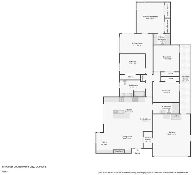 This is the house you've been waiting for! When you enter, you are greeted by a beautifully updated great room and kitchen - complete with fireplace, built in desk and kitchen island. As you travel down the hallway, you'll encounter four bedrooms, three full bathrooms and a bonus area that can be used as an office, kids play room or extra family room. The backyard is an entertainer's dream! You'll find a covered patio with built-in kitchen, a hot tub, a fire pit and even an outdoor shower! There is plenty of storage along the side of the house and the garage even has built-in speakers for your listening pleasure. Additional features include: 2-year-old owned solar with NEM 2 metering transferable to new owner, new heat pump installed in 2025 for both heating and air conditioning, 2 blocks to Stafford Park for Wednesday summer concerts and kids playground, 3 blocks to Sequoia Hospital, flat walking to downtown Redwood City with Caltrain Station and easy access to both 101 and 280. Welcome home to 314 Outer Circle!