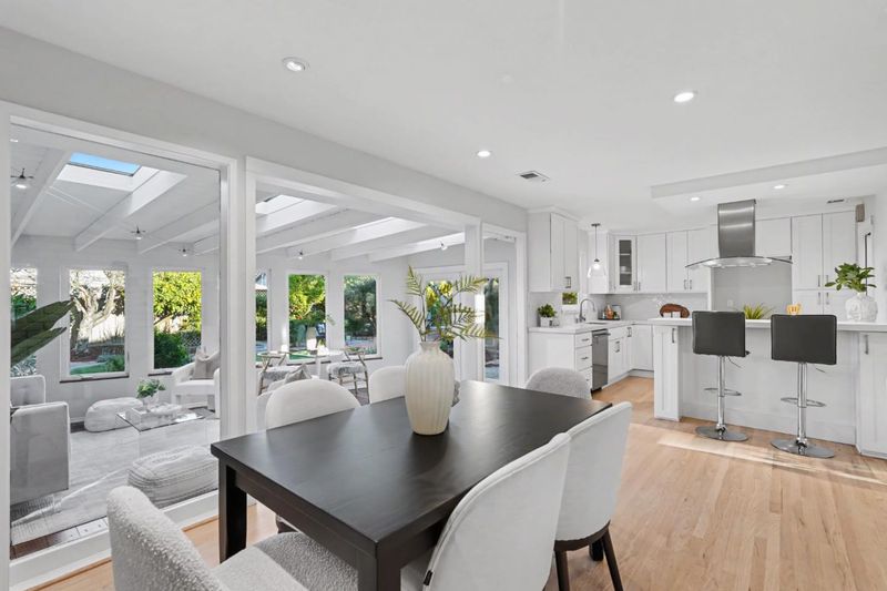 Welcome to 141 Muir Ave! Custom home expanded in 2010 boasting high & vaulted ceilings, (2) primary suites, & is flooded with natural light throughout. Highly sought-after Cupertino schools + lower cost Santa Clara utilities! Chef's kitchen featuring white shaker style cabinets, quartz countertops, custom herringbone backsplash, stainless-steel appliances, & a breakfast bar with seating for (2). The main primary suite has soaring ceilings, rich wood flooring, & a calming, airy ambiance. Its renovated bath includes modern finishes & a large walk-in shower! Spacious sunroom-style family room with skylights, beamed ceilings, French doors, & large windows providing serene backyard views! Additional features include refinished hardwood floors, double pane windows, copper plumbing, presidential style roof, new interior & exterior paint, recessed lights, fireplace, & more! Professionally landscaped yards featuring a paver driveway & walkway, spacious patio for outdoor entertaining, mature plants and trees, hot tub, raised vegetable beds, producing fruits trees, & automatic sprinklers & drip irrigation! Prime location within walking distance to Eisenhower elementary & Maywood Park as well as close proximity to Apple Park, Nvidia, Kaiser, Cupertino Main Street, & many high-tech companies!
