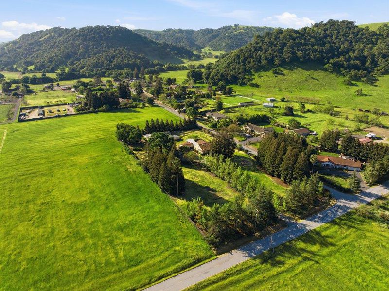 This unique Coyote Valley estate spans nearly three acres of beautifully manicured, park-like grounds. A stunning tree-lined drive welcomes you to the property. The charming home offers over 2,000 square feet of living space, featuring three bedrooms, two recently remodeled full bathrooms, and a basement. The light-filled kitchen has been fully renovated, blending style and functionality. In addition, the property includes multiple outbuildings (some finished) and 6 extra bathrooms/showers, creating incredible flexibility for a variety of uses. With endless possibilities, this exceptional property invites you to bring your imagination and you're sure to fall in love.