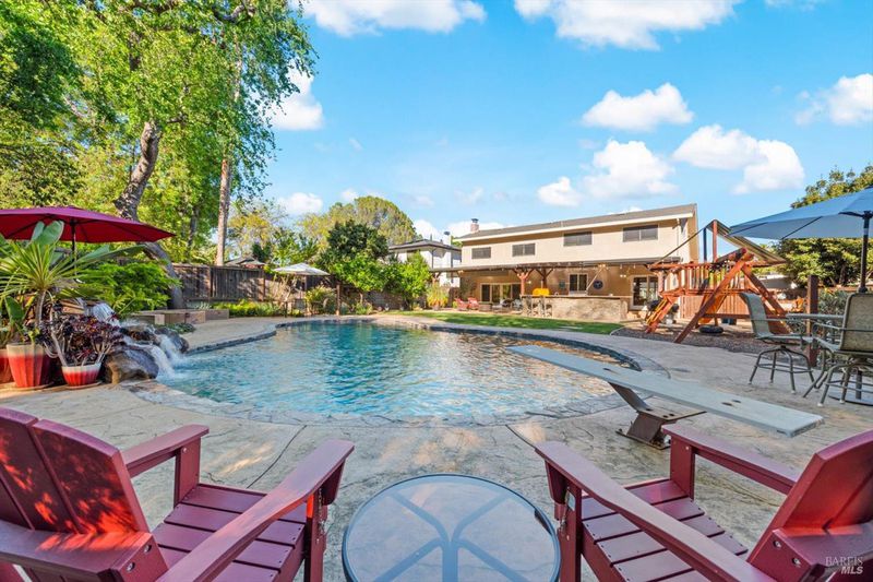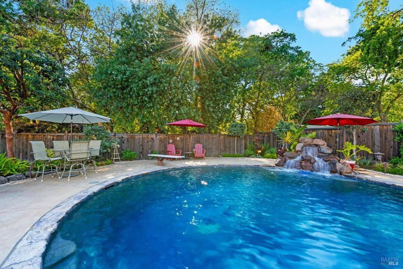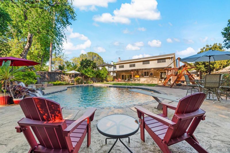 Stunning North Vacaville Updated Two-Story Home With Sparkling In-Ground Pool And Waterfall! This 5 Bedroom, 2 1/2 Bathroom Home Is Adorned With Custom Updates Boasting An Open Floor Plan, Gourmet Kitchen With Stainless Steel Appliances, Double Ovens, Granite Countertops, Island With Cooktop, Beverage Refrigerator, Breakfast Bar And Pendant Lighting Plus Built-In Buffet And Additional Cabinetry. The Primary Suite Features An Expansive Walk-In Closet And Luxurious Remodeled En Suite Bathroom With Dual Sink Vanity And Spa Like Shower With Multiple Shower Heads. Property Highlights Include Custom Molding And Door Casings, Fireplace With Custom Cover And Built-In Shelving, Shutters Throughout, Recessed Lighting, Ceiling Fans, Wet Bar With Additional Beverage Fridge, Updated LVP Flooring, Fresh, Neutral Paint And Indoor Laundry With A Laundry Chute. Other Updates Include Windows At The Front Of House, Insulated Garage Door, HVAC, Leaf Filters, Pool Equipment, Electrical Sub Panel And Water Heater. Stunning Curb Appeal Made For Entertaining With Resort Style Backyard Including Sparkling In-Ground Pebble Bottom Pool With Waterfall, Expansive Covered Patio, Outdoor Kitchen With Built-In Viking BBQ, Seamlessly Integrated Fire Pit With Seating, Stamped Concrete, Raised Garden Beds, Play Structure, Lawn Areas, Mature Trees And Greenery, Fenced Side Yard, Storage Shed, Covered Front Patio, Natural Stone Siding And Extended Driveway. This Gorgeous Home Will Impress The Most Discerning Buyer!