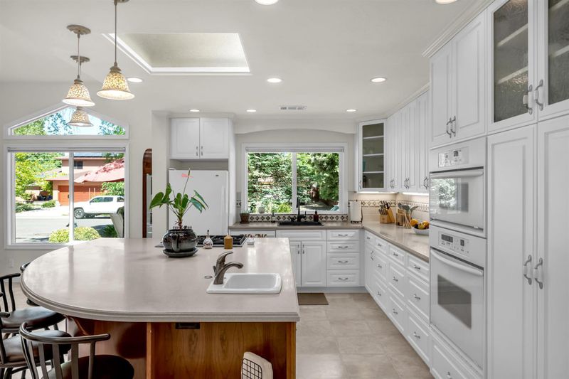 Located on a quiet U-shaped street, this thoughtfully maintained 2,704 sq ft home offers space, flexibility, and a setting that is increasingly hard to find. Owned by the same family since 1957, the home carries a sense of continuity while benefiting from recent updates, including fresh interior paint and new flooring throughout much of the home. Original hardwood floors remain beneath portions of the flooring, offering future potential. The layout is both functional and adaptable, with a ground-floor primary suite, two additional rooms, and a full bathwell suited for multi-generational living, guests, or a home office setup. Upstairs, four additional bedrooms and a full bath provide separation and scale without feeling disconnected. The kitchen and great room form the natural center of the home, anchored by a large island and a comfortable gathering space that supports both everyday living and entertaining. The kitchen window overlooks the front yard, creating a subtle connection to the neighborhood. The outdoor spaces are a standout. The front yard features a broad, manicured lawn framed by mature trees and layered landscaping, while the backyard offers a more private, usable setting. Located directly across from a path to Redwood Park and Cesar Chavez Elementary, the location combines convenience with a peaceful residential feel.