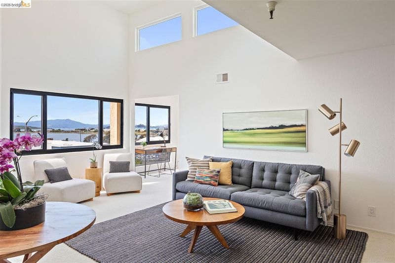 Crowning the top floor, this standout residence is one of the best-located units in the building, offering sweeping Bay views, exceptional natural light, and soaring ceilings that create a bright, open feel throughout. The layout features two en-suite bedrooms, providing both comfort and privacy. Recent updates include new carpet, a new bathroom vanity, and a new refrigerator and range—making it easy to move right in. Additional highlights include in-unit laundry, two deeded parking spaces, and a separate storage room. HOA amenities include a pool, fitness center, and clubhouse. Set in a prime Albany location with easy access to shopping, dining, AC Transit, BART, and freeways—everything is within reach. Top-floor privacy, great light, and some of the best views in the building—this is a rare opportunity.