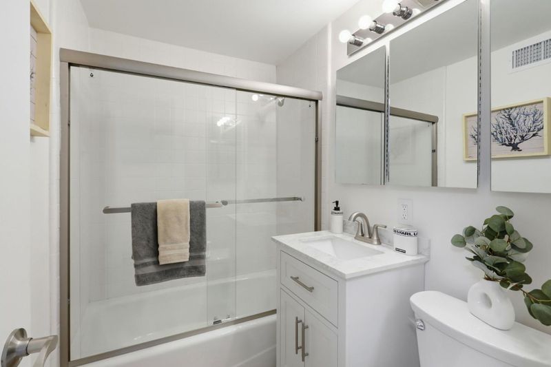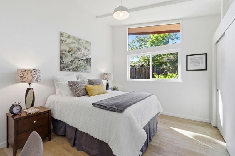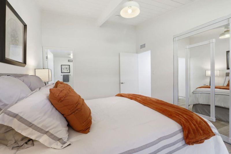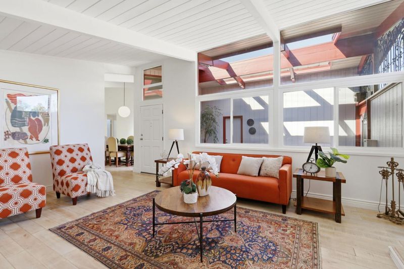 Bright and airy American Housing Guild single story home with atrium entry. Rarely available four bedrooms, two and one-half baths, expanded floor plan in Sunnyvale's most prestigious zip code, and desirable location. Approximately 1772 square feet of living space, Vaulted and exposed beam ceilings, oversized formal living area with fireplace. large windows & skylights that fill the interior with abundant natural light. Freshly painted interior, newly installed whole house heat pump for HVAC, upgraded electric panel to 200Amp, recently updated bathrooms with newly installed vanities, shower heads, faucets, and shower doors, newly installed dual pane windows in living room and most of the bedrooms. Kitchen with stainless steel appliances and a charming garden window. a comfortable family room with a sliding door to the backyard with a firepit for indoor/outdoor living. large dining area with a patio door opens to the enclosed atrium. Top rated Cupertino Schools and an amazing location near parks, hi-tech companies and vibrant downtown Sunnyvale make this the ideal home for convenience and lifestyle.