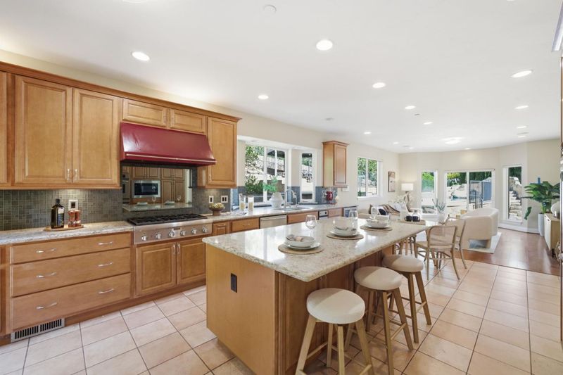 - Cooktop - Gas, Garbage Disposal, Hood Over Range, Island, Microwave, Oven - Built-In, Oven - Double, Oven Range, Refrigerator, Trash Compactor, Wine Refrigerator