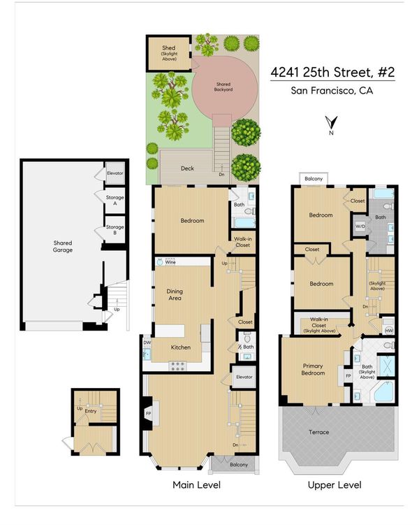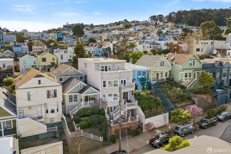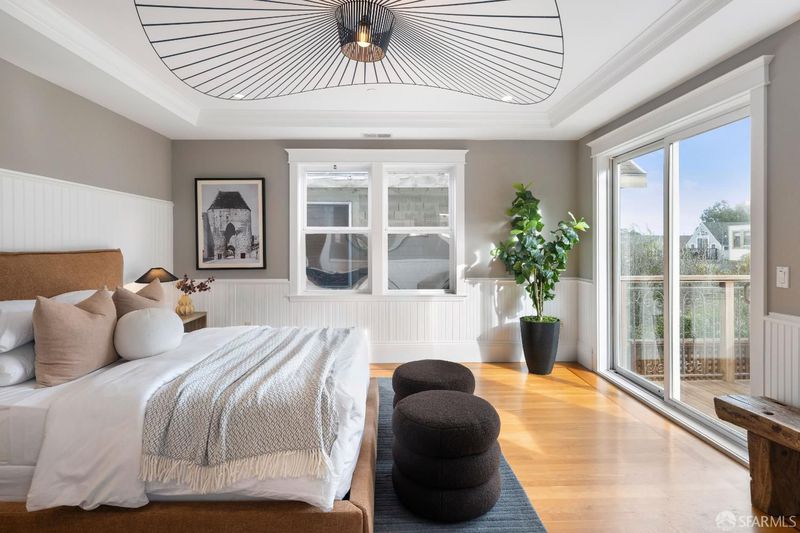 A rare offering of scale and sophistication, this expansive two-level, 4-bedroom, 3.5-bath residence lives with the volume, privacy, and presence of a single-family home. Ideally positioned in prime Noe Valley, just moments from the coveted shops, dining, cafs, and everyday conveniences of 24th Street, the home blends neighborhood charm with refined modern living. The residence features private elevator access directly from the garage, custom designer light fixtures, and thoughtfully curated finishes. Generous proportions, soaring ceilings, and abundant natural light create an airy, open ambiance across both levels. The newly remodeled chef's kitchen is appointed with a Wolf professional range and a striking Sub-Zero Pro glass-door refrigerator, combining exceptional performance with iconic design. Custom cabinetry and refined surfaces anchor the space, which flows seamlessly into an elegant dining area with a wet bar ideal for intimate dinners or larger-scale entertaining. The primary suite is a true retreat, opening to a generous private terrace with sweeping panoramic views. The spa-inspired bath features a luxurious soaking tub and fireplace, creating a tranquil sanctuary above the city. Three additional bedrooms provide flexibility for family, guests, or dedicated office space. Three newly remodeled bathroooms, integrated audio wiring, in-unit laundry, two-car garage parking, and additional private storage complete the home's blend of comfort and convenience. The sunny south-facing yard offers a peaceful escape with fire pit and a flexible shared bonus structure. An exceptional opportunity to own scale, privacy, and contemporary luxury in one of San Francisco's most sought-after neighborhoods.