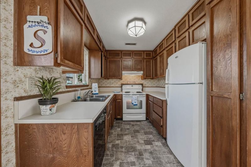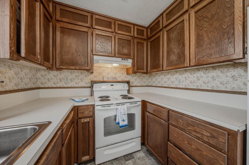 - Cooktop - Electric, Countertop - Formica, Dishwasher, Exhaust Fan, Garbage Disposal, Oven - Electric, Refrigerator