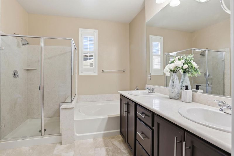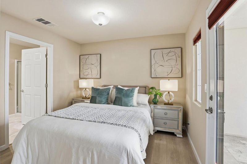 Immaculate and impeccably maintained, this 4-bedroom townhome boasts a premium location in the desirable Ardenwood neighborhood Villa D'este community. It features abundant large picture windows that offer lush garden views from the living room and opulent soothing natural light. The open floor plan is decorated in contemporary neutral colors and quality laminate wood flooring throughout. The spacious and functional kitchen is equipped with ample dark Shaker cabinets, SS appliances, expansive granite counters, and a convenient central island. Step out onto the intimate deck from the living room, seamlessly blending indoor and outdoor living. The first floor guest/in-law bedroom is adjacent to a full bath, providing privacy and convenience. Second sunny deck off the this bedroom with an open view. The generous master suite includes a lavish ensuite bath with both large bathtub and shower place, dual sink vanity, and a spacious walk-in closet. Enjoy outdoor activities in the nearby parks including Coyote Hills Regional Park and Ardenwood Historic Farm. Convenient location: Short commute to Fremont/Newark shopping centers. Easy access to BART, ACE, freeways 101/880/84. Top rated school district: Warwick Elementary (8/10), Thornton Middle (9/10) & American High (10/10).