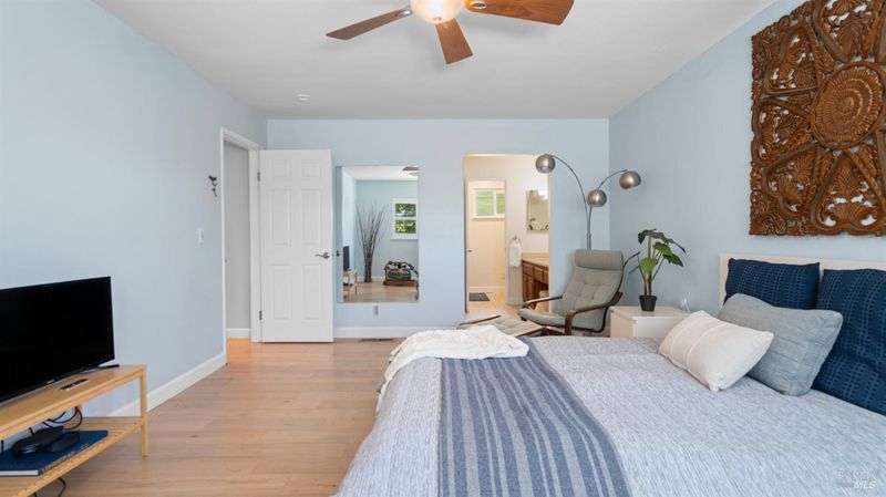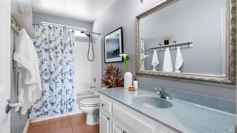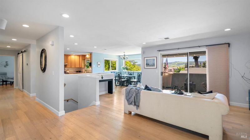 Experience the best of Benicia in this versatile two-story home, ideally located near Benicia State Park, local schools, and downtown shopping and dining. The upper level serves as the main living hub, featuring a bright open-concept floor plan that connects the kitchen, dining, and living areas to a private balcony with views of the hills. The spacious primary suite offers a walk-in closet and a bathroom with a step-in shower, accompanied by two additional bedrooms and an additional room with a laundry closet. The ground floor provides a private secondary suite, perfect for guests or a home office. Central heat and AC provide year around comfort. Complete with a two-car garage, plus boat/RV parking, and a short drive to the Vallejo Ferry for easy SF commuting, this home perfectly balances comfort and convenience.