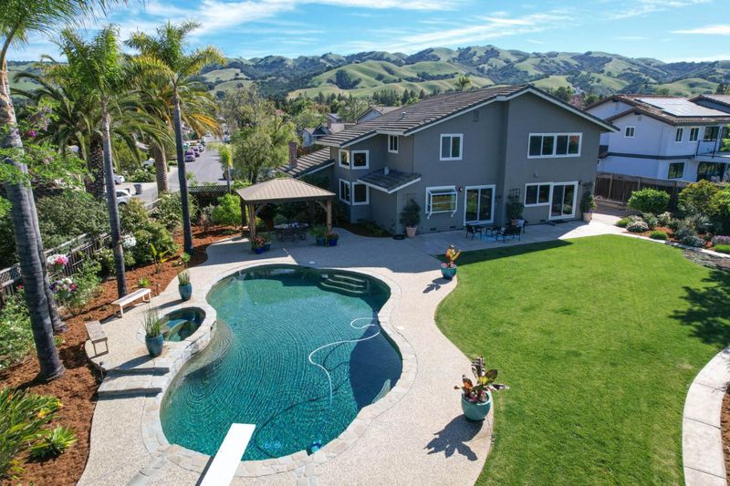 Best VIEWS in the Evergreen Valley from this meticulously maintained home in The Meadowlands. Located on a 25,000+ sf lot and landscaped to perfection to offer both privacy and breathtaking views. The large backyard is equipped with a built-in pool, spa, pergola, lawn play area & planter boxes in the rear yard for the gardening enthusiast. The interior of the home has 2768 sf of gorgeous living space with 4 bedrooms & 3 full bathrooms. Oak hardwood flooring flows throughout. The main floor bedroom was remodeled to include cherry cabinets, built-in desk, Murphy Bed plus a walk-in closet. Across the hall is a full bathroom with a walk-in shower. The Chef's kitchen is equipped with granite counter tops, cherry cabinets, stainless steel appliances, six burner stove, double ovens, pantry with pull out shelves and recessed lighting. The adjacent family room has cherry cabinetry, bar area with beverage fridge & a gas fireplace. Upstairs is the primary suite with gorgeous views, ensuite bathroom & walk-in closet. Completing the upstairs are two additional generously sized bedrooms and a beautifully remodeled hallway bath. Additional upgrades include Milgard double- paned windows throughout, NEST thermostats, and dual air & heat. Move-in ready! A spectacular must see home!