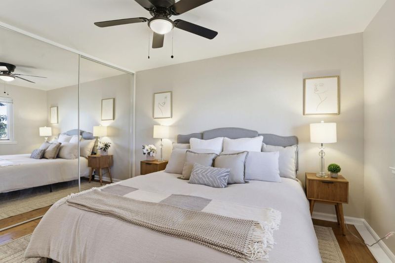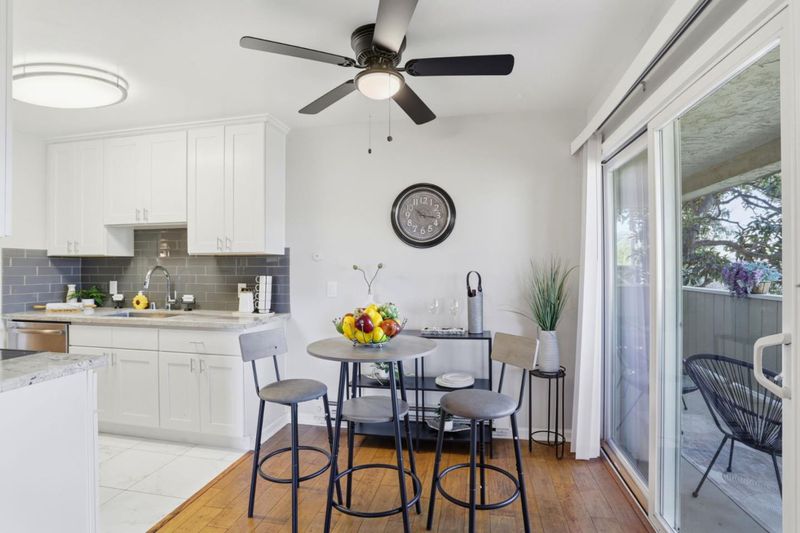Discover 150 Rainbow Drive #4! Nestled in a peaceful, park-like community at the crossroads of Cupertino, Saratoga, and San Jose, this inviting 2-bedroom, 1-bath condominium combines comfort, convenience, and contemporary style. The bright, open layout features a fresh neutral palette, wood flooring, and a cohesive modern design that feels warm and welcoming. The updated kitchen with stainless steel appliances, white cabinetry, and granite countertops opens to a spacious living area filled with natural light. TWO large private patios, a rare feature in this community, provide perfect spaces for morning coffee, outdoor dining, or evening gatherings. With updated electrical finishes, ample storage, and a ground-floor location, this home is move-in ready and ideal for easy living. Residents enjoy resort-style amenities including two pools, a fitness center, and secure entry, all set among mature trees and beautifully landscaped grounds. Just minutes from Calabazas Park, top-rated schools, tech campuses, and local shops and cafés, this home offers the best of Silicon Valley living with a relaxed neighborhood feel.