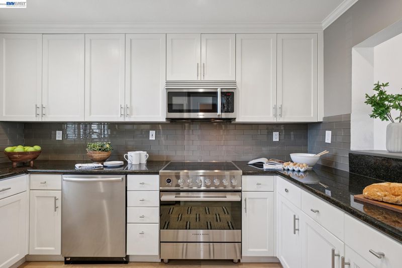 - Dishwasher, Electric Range, Microwave, Dryer, Washer, Gas Water Heater, Breakfast Bar, Counter - Solid Surface, Electric Range/Cooktop, Updated Kitchen