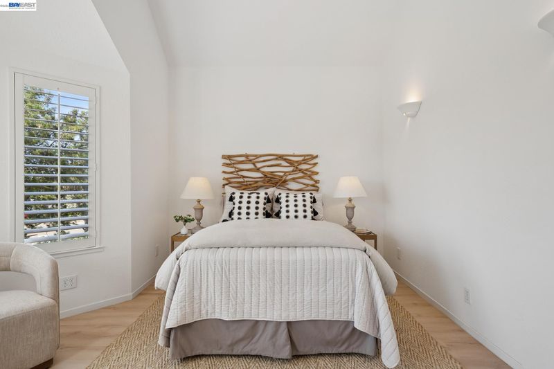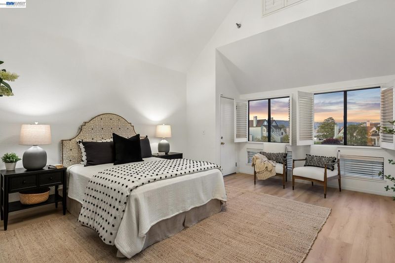 Located in Alameda's picturesque Marina Village neighborhood overlooking a freshwater lagoon on Alameda's main island, this contemporary, move-in-ready property features 2 BR, 3.5 BA, an open LR/DR combination, an updated kitchen, a detached garage, 2 decks, and a spacious lower level bonus space w/a separate entrance - all with beautiful lagoon, marina and Oakland hills views. Conveniently situated across from the Marina Village Shopping Center with a variety of services, eateries, and stores, the location also provides close proximity to Shoreline Park, the Marina Village Yacht Harbor and the Webster/Posey tube for easy freeway access. Details include cathedral ceilings, a gas fireplace, attractive LVP flooring, stylish light fixtures + a sophisticated kitchen w/granite counters & stainless steel Bosch + Fisher & Paykel appliances. Bedrooms are generously sized with high ceilings & large closets custom organizers. The sun-filled primary BR features a large ensuite bathroom w/a double vanity + a hydrotherapy soaking tub. The versatile lower level has a private entrance, a full bathroom and deck, creating an ideal home office, gym or family room. The flexible floor plan with tranquil views and large, sun-filled rooms combine to make this an exceptional Alameda opportunity.